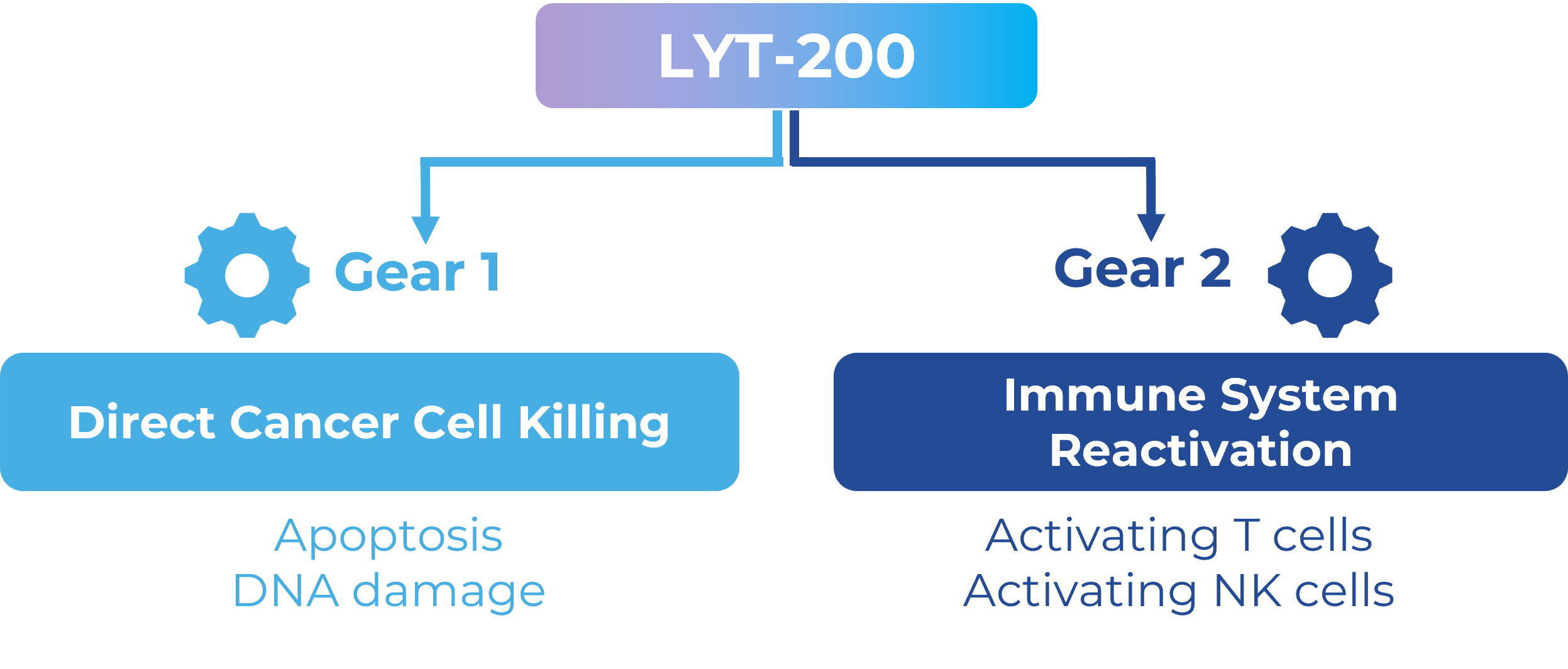 We are focused on transforming treatment paradigms for both hematologic and solid tumor indications. Our lead asset, LYT-200, has received Fast Track and Orphan Drug Designations for the treatment of acute myeloid leukemia (AML) and head and neck squamous cell carcinoma (HNSCC). With its dual mechanism of action—direct tumor suppression and immune modulation—LYT-200 represents a novel, differentiated approach in oncology therapeutics.